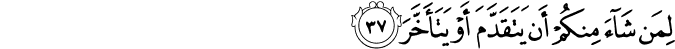 Translation:a warning to every one of you, who desires to go forward, or to lag behind. |