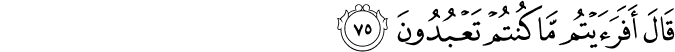 Translit: Qala afaraaytum ma kuntum taAAbudoona