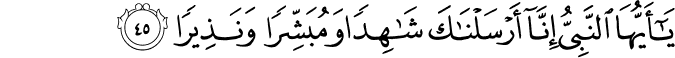 Translit: Ya ayyuha alnnabiyyu inna arsalnaka shahidan wamubashshiran wanatheeran