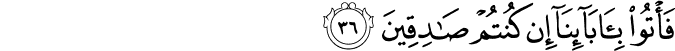 Translation: Bring back our forefathers if you are truthful." biabaina | biabَإِna | word: بَِبَإِنَ