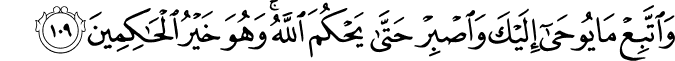 Translit: WaittabiAA ma yooha ilayka waisbir hatta yahkuma Allahu wahuwa khayru alhakimeena