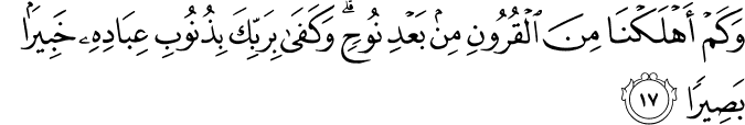Translit: Wakam ahlakna mina alqurooni min baAAdi noohin wakafa birabbika bithunoobi AAibadihi khabeeran baseeran