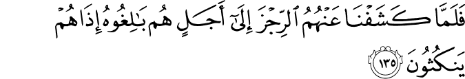 Translation: But as soon as We removed the plague from them after the expiry of the term that had been fixed for them, they would at once break their promise. kashafna | kashafna | word: كَشَفنَ