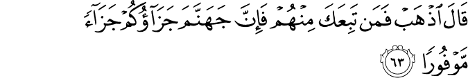 Translit: Qala ithhab faman tabiAAaka minhum fainna jahannama jazaokum jazaan mawfooran
