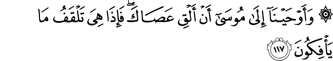 Translit: Waawhayna ila moosa an alqi AAasaka faitha hiya talqafu ma yafikoona
