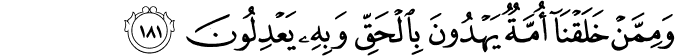 Translit: Wamimman khalaqna ommatun yahdoona bialhaqqi wabihi yaAAdiloona