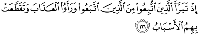 Translit: Ith tabarraa allatheena ittubiAAoo mina allatheena ittabaAAoo waraawoo alAAathaba wataqattaAAat bihimu alasbabu