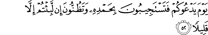 Translit: Yawma yadAAookum fatastajeeboona bihamdihi watathunnoona in labithtum illa qaleelan