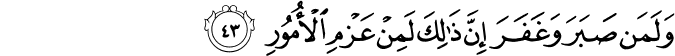 Translation: However, the one who practices patience and is forgiving. these indeed are works of great courage and resolution.sabara | sabara | word: سَبَرَ