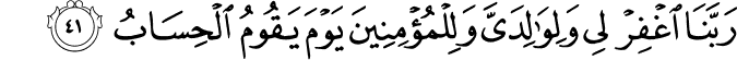 Translit: Rabbana ighfir lee waliwalidayya walilmumineena yawma yaqoomu alhisabu